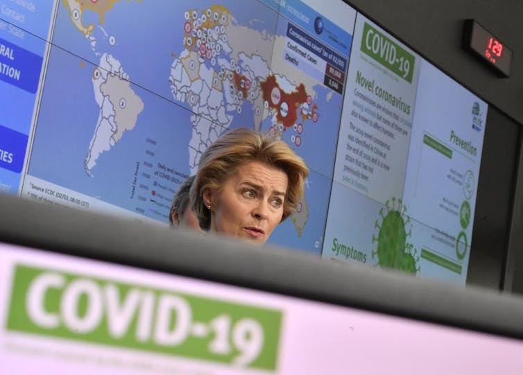 Les pays de l’Union européenne (UE) ont chacun adopté des mesures différentes pour lutter contre l’épidémie de Covid-19, et il n’y a pour l’instant pas de mécanisme de partage de ressources médicales – par exemple des masques de protection – entre pays. La Commission européenne essaye toutefois de coordonner la réponse des États membres de l’UE à travers la mise en place d’une équipe dédiée, tandis que le Centre européen de prévention et de contrôle des maladies leur fournit des données de surveillance et des avis scientifiques.